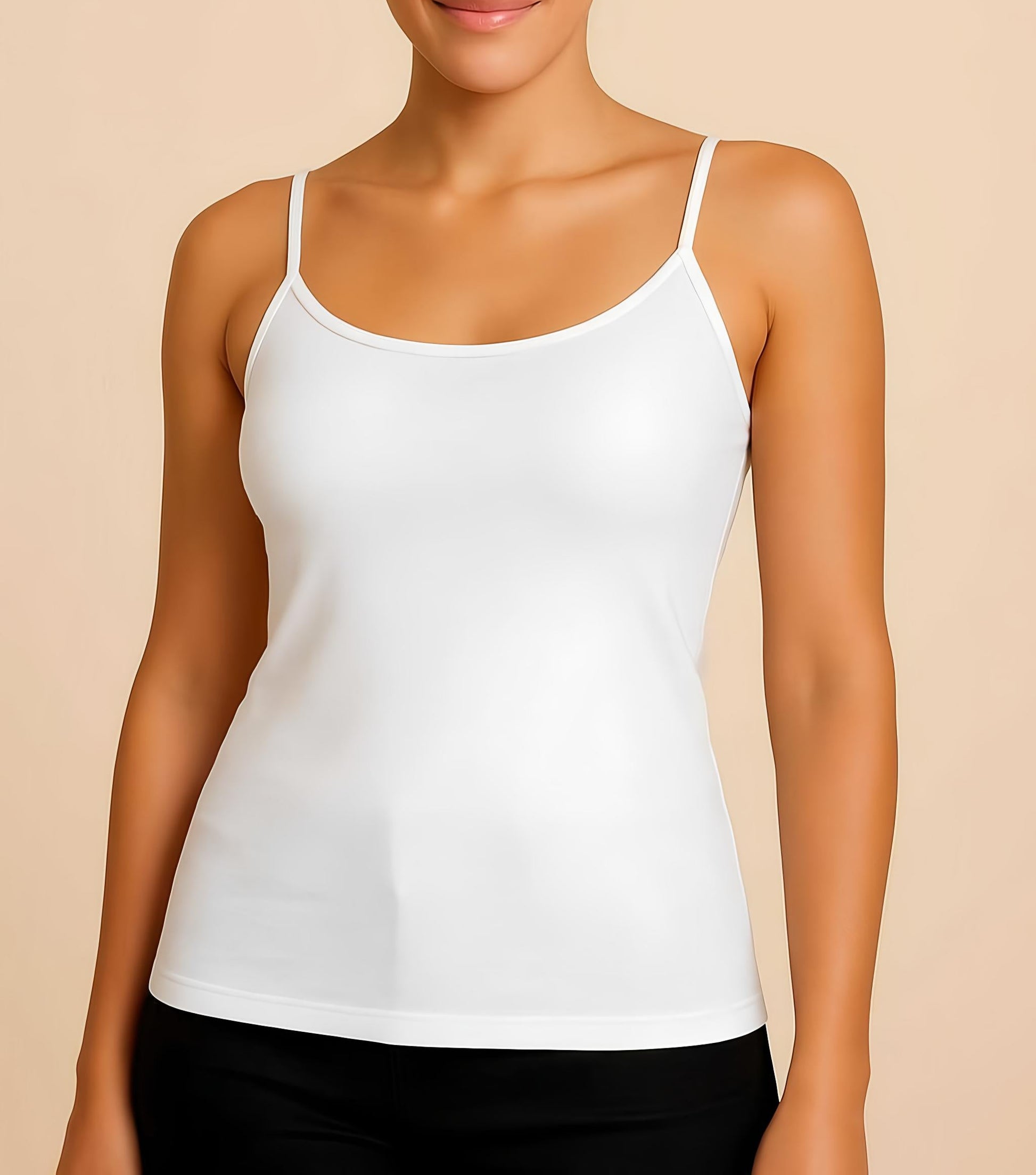 أضيفي لمسة أنثوية وأنيقة لستايلك مع توب قطن ستريتش Slim Fit بحمالات رفيعة – تصميم مريح وخفيف يبرز القوام بشكل أنيق. مثالي للجيم، البيت، أو للبس تحت الجاكيت/القميص كـ layering.